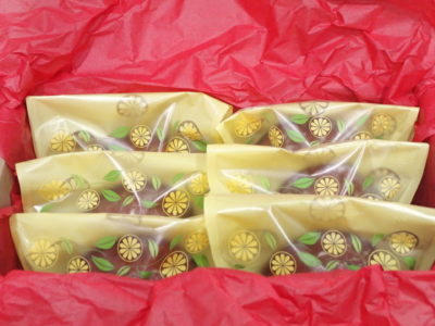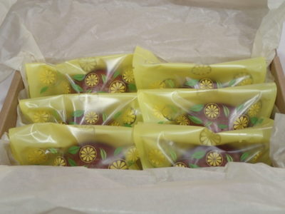出来上がりはこんな感じ。6個入り2セットのご注文でした。お渡し前に、家にあった箱をつかって写真をとってみました。