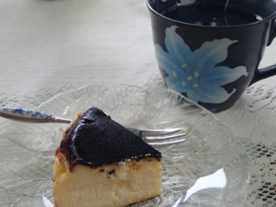 食べるのも作るのも初めてのバスクチーズケーキを習いました。ご近所の仲良しさんのところにお持ちして、一緒に試食しました。