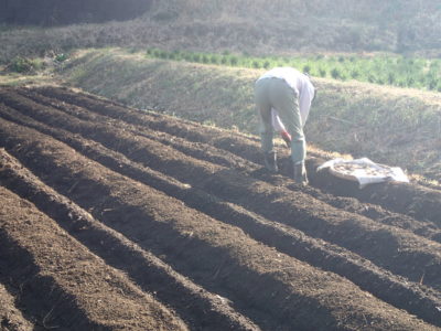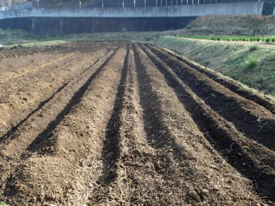 並べてから土の中に埋めるよ。